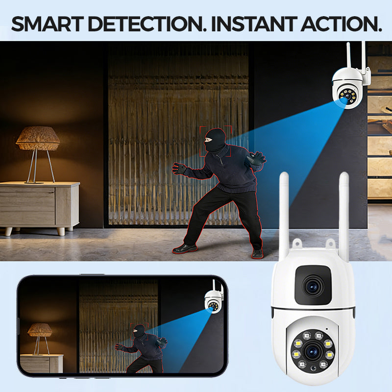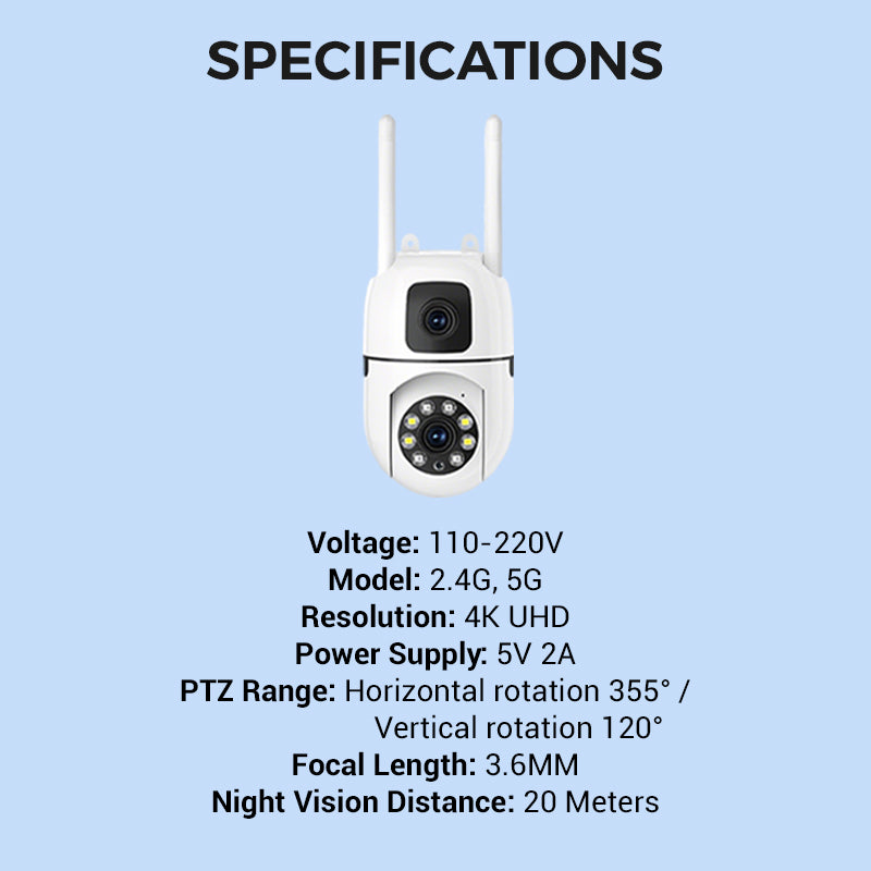 🔍🔍360° pan-tilt 4K-beveiligingscamera met dubbele lens