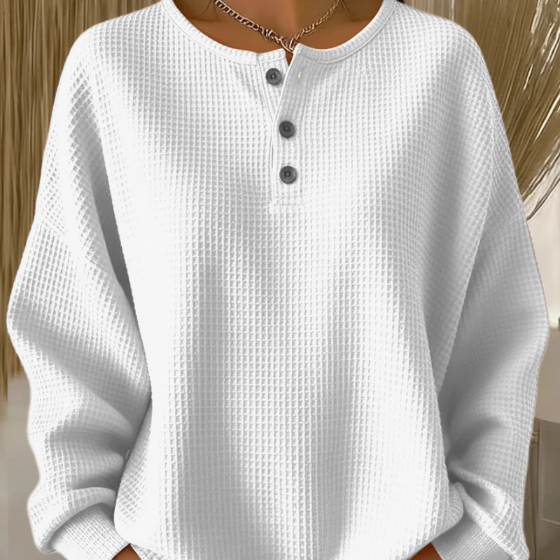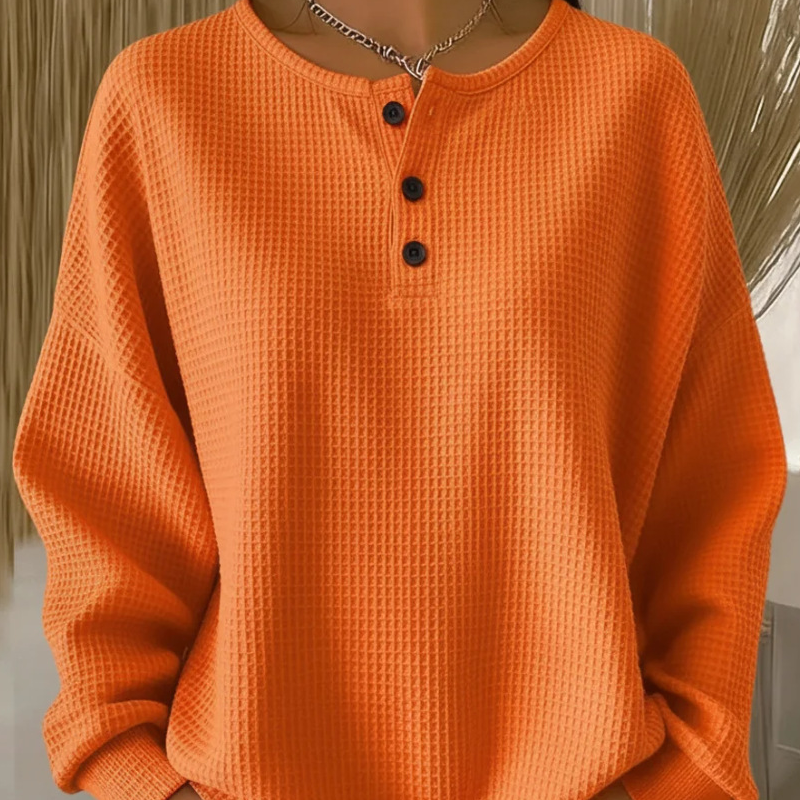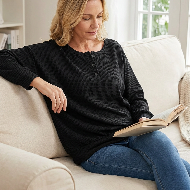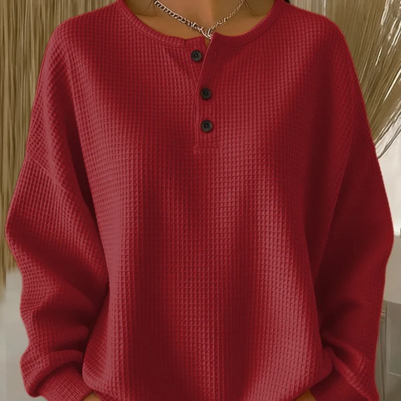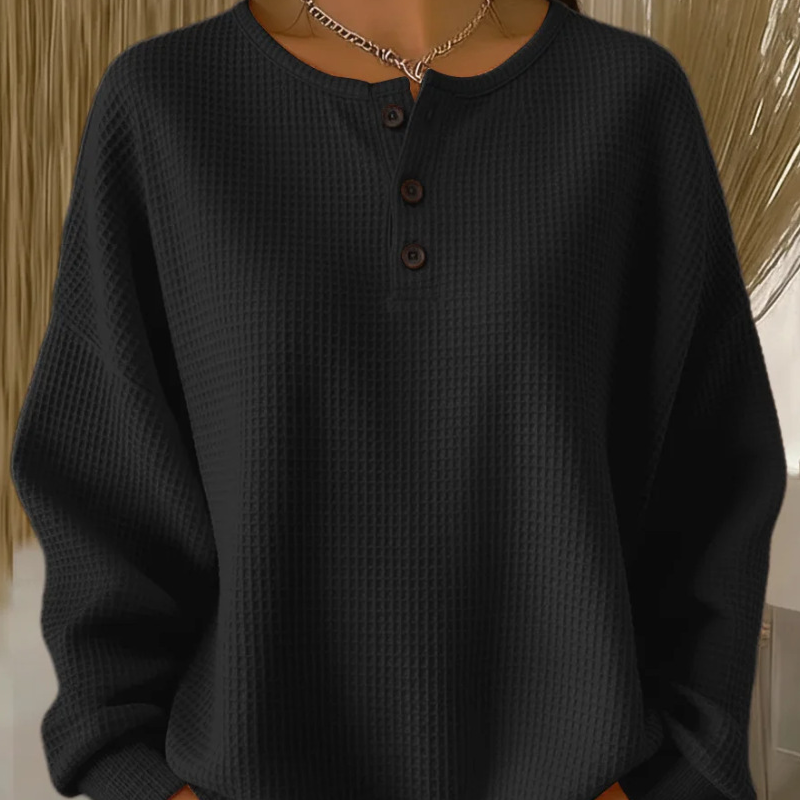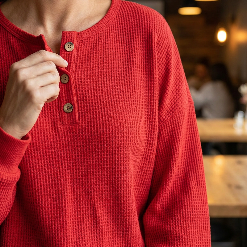 Women's Long Sleeve Waffle-Knit Henley Top