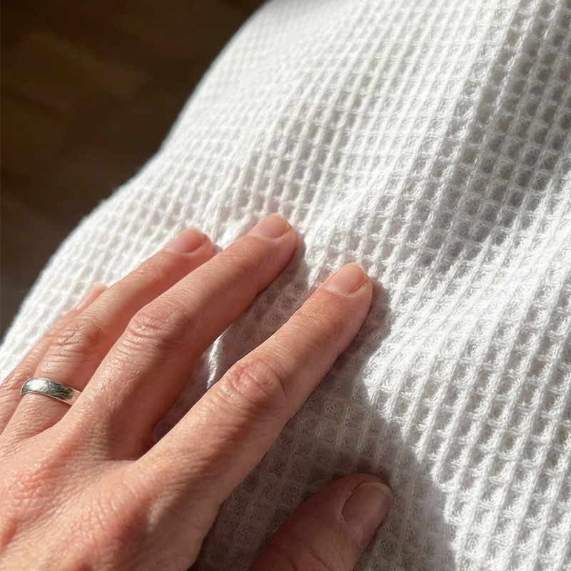 PREMIUM WAFELBREI STOF - Ervaar superieur comfort met ons zachte, ademende en lichtgewicht wafelkatoenmateriaal. Deze gestructureerde stof biedt precies de juiste hoeveelheid warmte voor koelere dagen zonder zwaar aan te voelen, en zorgt voor het hele dag door gezelligheid.